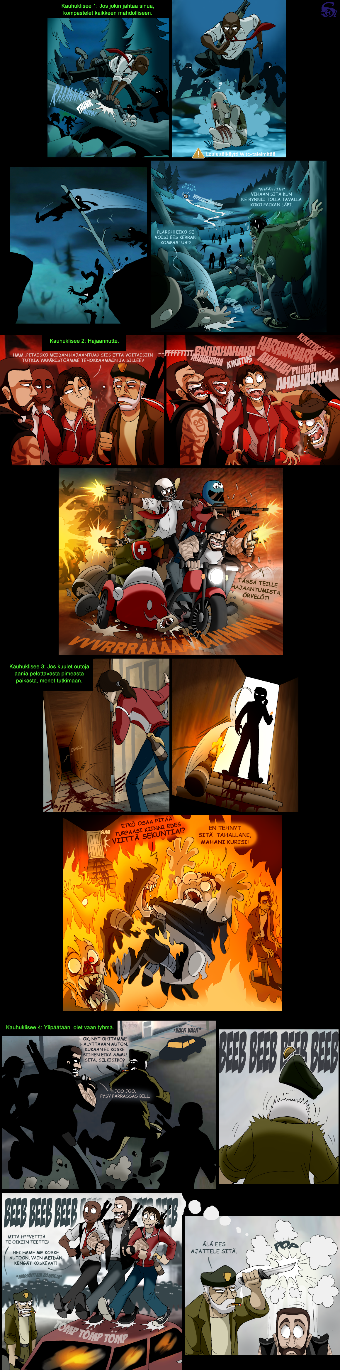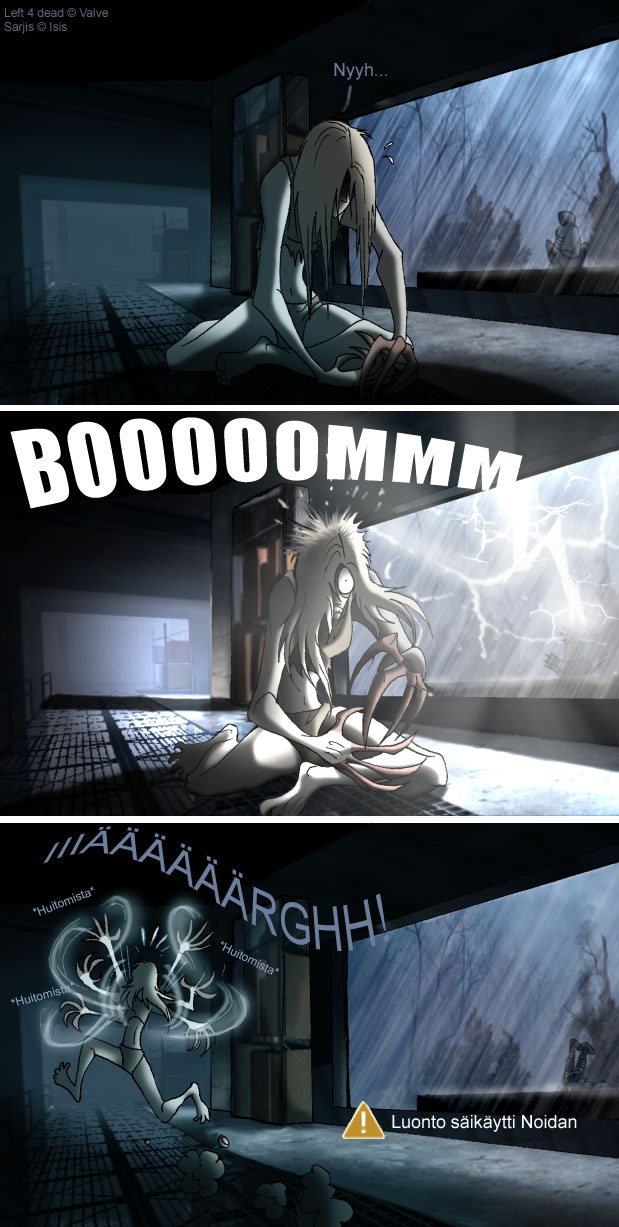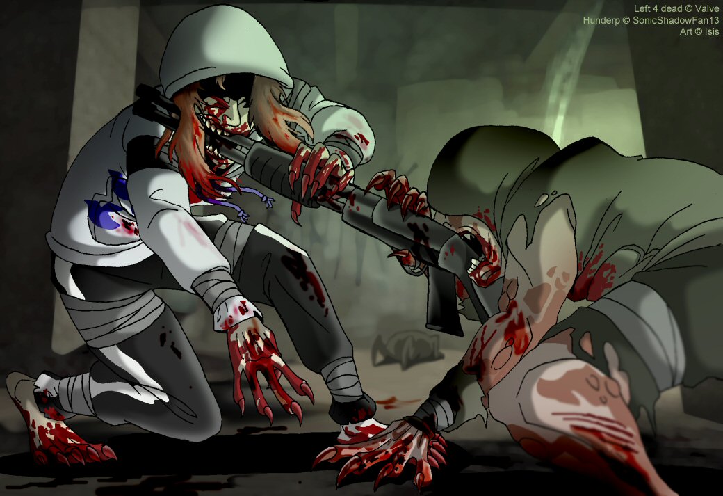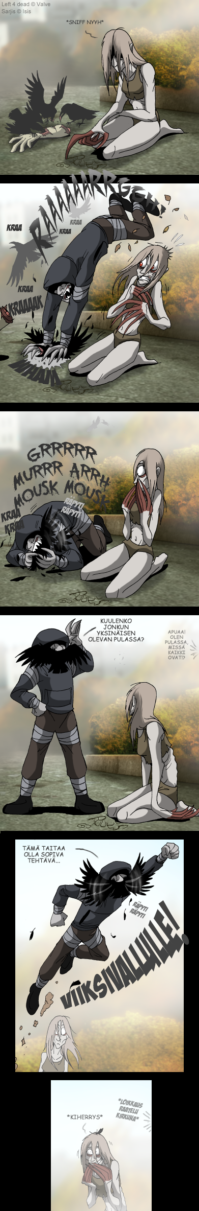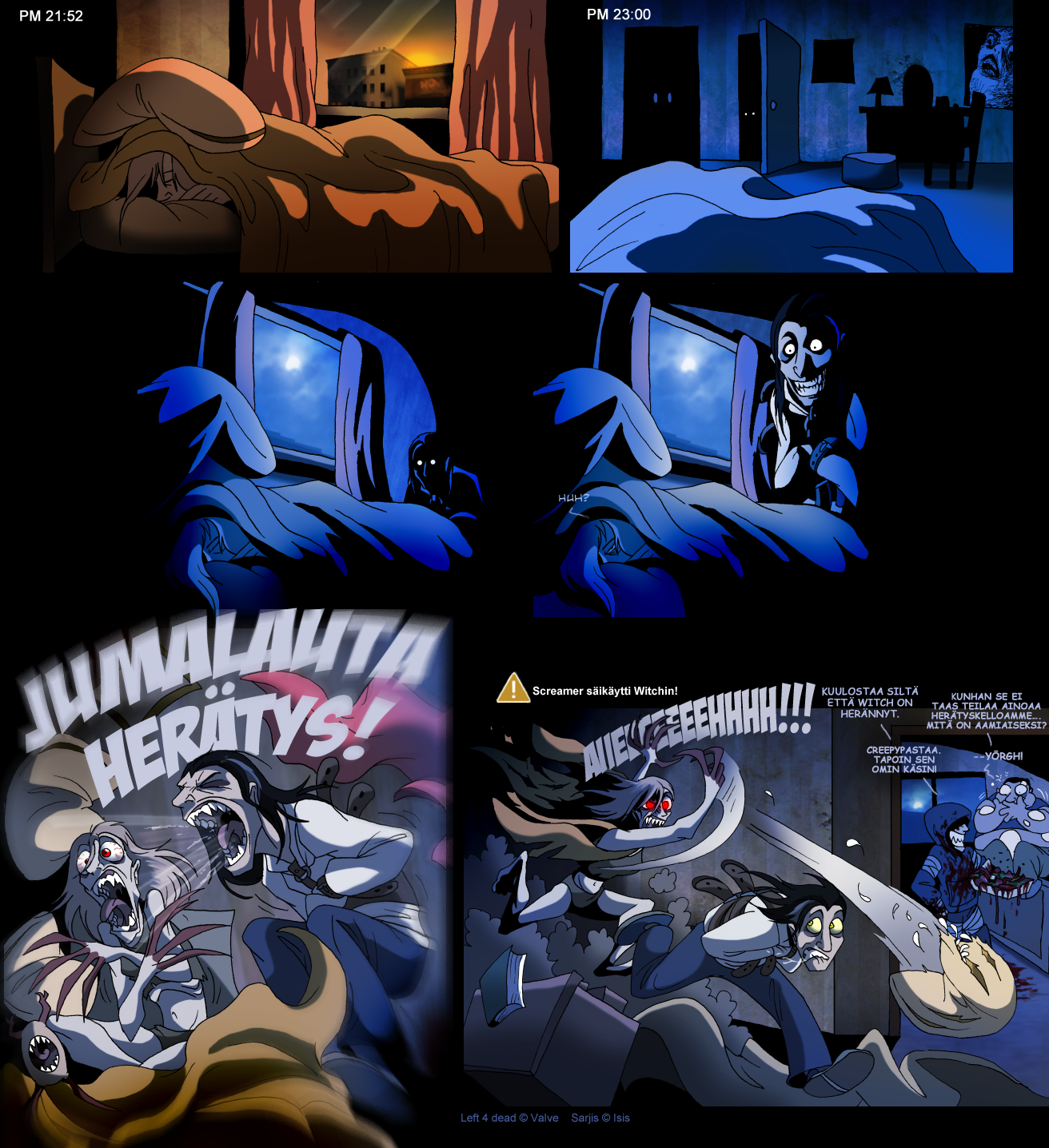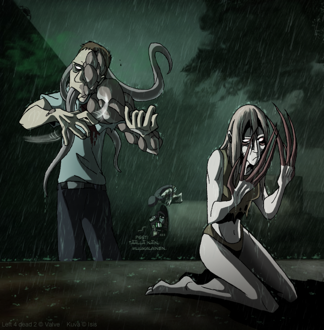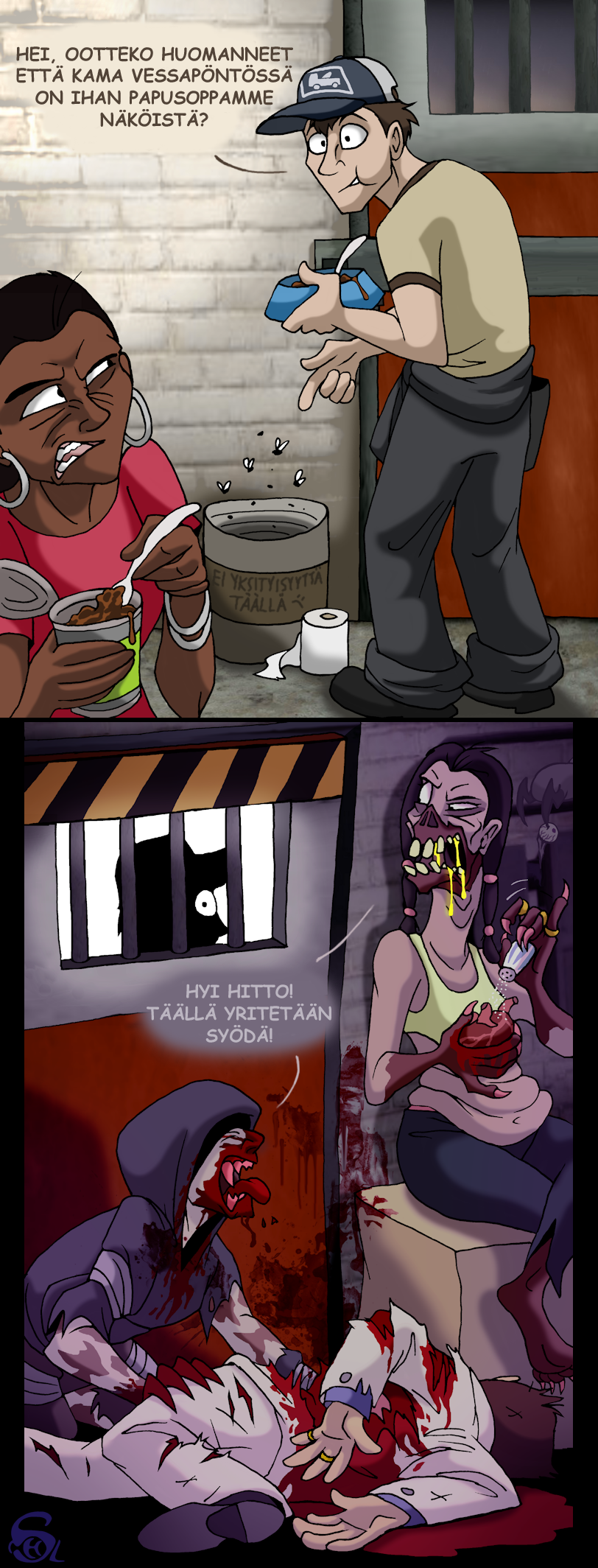 Näiden pilasarjakuvien aiheena on Valven julkaisema Left 4 Dead, ensimmäisen persoonan ammunta- ja selviytymiskauhupeli. Pelissä on 2 vastakkaista tiimiä, ihmis-selviytyjät ja zombimaiset saastuneet. Sarjakuvissa on paljon väkivaltaa ja kiroilua.