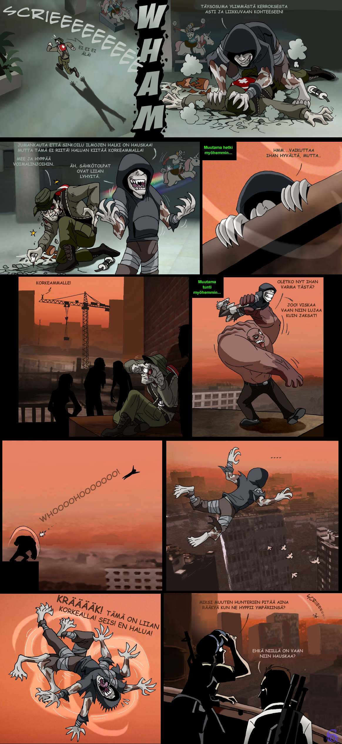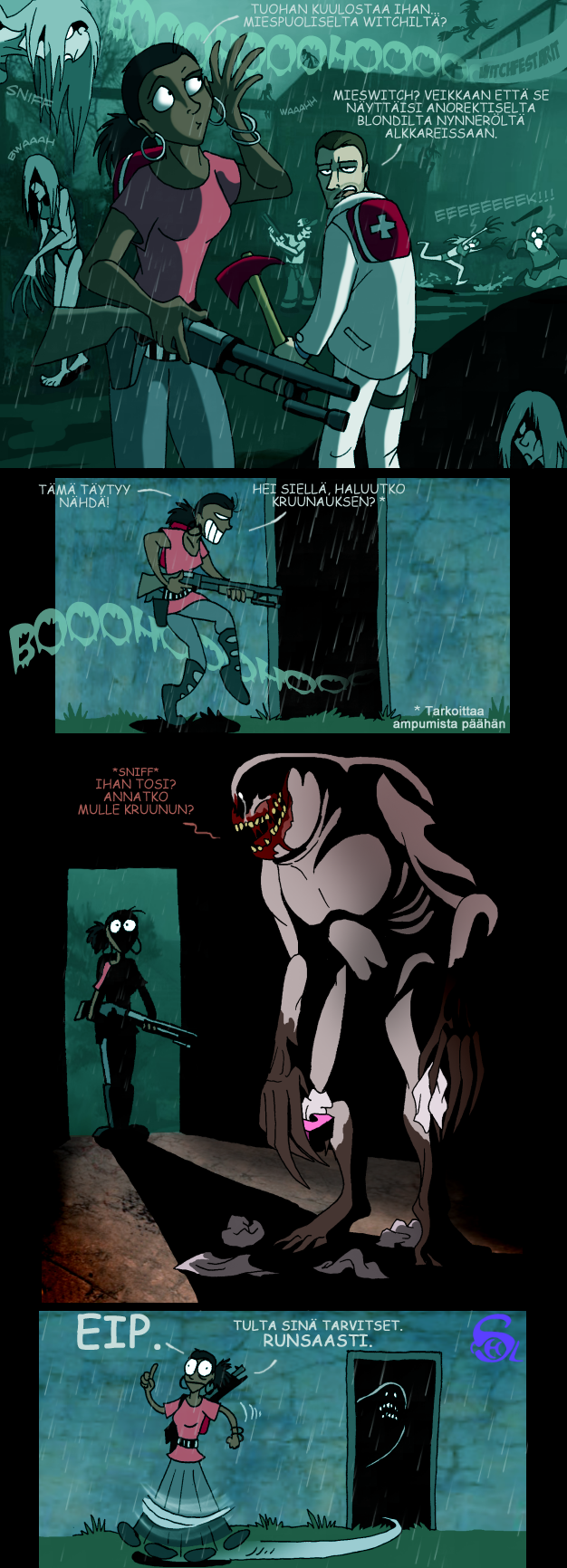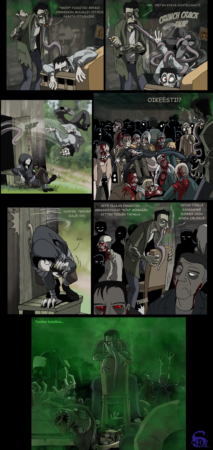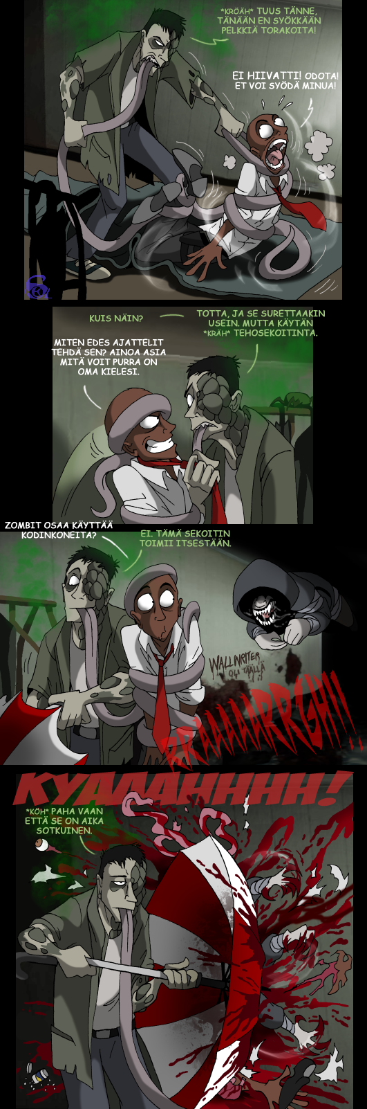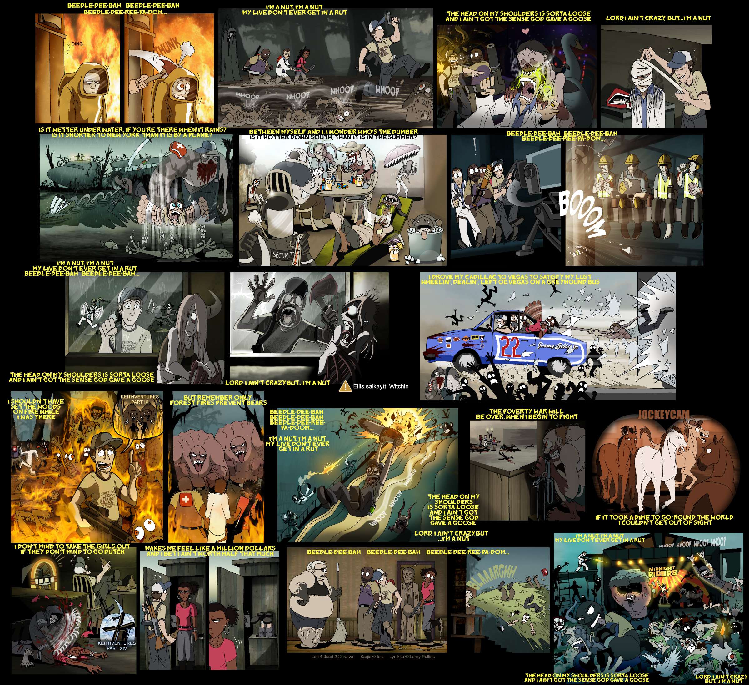 Näiden pilasarjakuvien aiheena on Valven julkaisema Left 4 Dead, ensimmäisen persoonan ammunta- ja selviytymiskauhupeli. Pelissä on 2 vastakkaista tiimiä, ihmis-selviytyjät ja zombimaiset saastuneet. Sarjakuvissa on paljon väkivaltaa ja kiroilua.