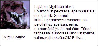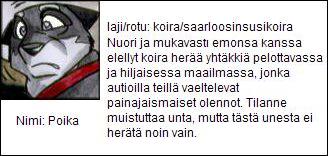 Pieni sarjakuva jonka aiheena on Suomen mytologian olennot, koiranpennun näkökulmasta. Poika-niminen Saarloosinsusikoira päätyy uneen, joka tuntuukin hyvin todelliselta. Sarjakuva on tehty vesiväreillä ja tietokoneella.Sarjakuvan hahmot: Poika, Kuido, Herättäjä, Koukot, Kalman väki, Paha Silmä, Ulappala