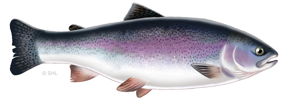 (Oncorhynchus mykiss)ruotsiksi regnbåge, englanniksi rainbow trout