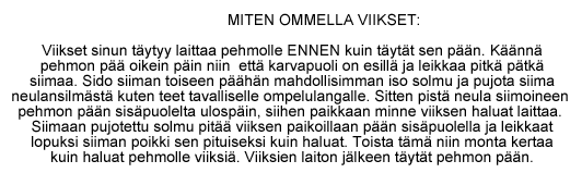 Jotta kissapehmo olisi mahdollisimman aidon oloinen painoaan myöten, voit lisätä pehmoa tehdessäsi muoviraepussit. Minulla oli pieni ongelma kaavojen koon säätämisessä, joten vaikka jokainen kaava-sivu mahtuisi normaalille A4-paperille, ne silti saattaisi tulostua hieman vaadittavaa kokoa pienemmäksi.