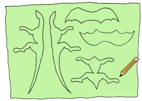 6. SIIPIEN MUOKKAUS: Käännä siivet oikeinpäin ja käyttele vaikka sukkapuikkoa saadaksesi suipommat siipienkärjet kokonaan käännettyä. Pidä seuraavaksi siivet litteänä kun piirrät vaikka lyijykynällä niiden pintaan vain toiselle puolelle haluamallasi tavalla "käsivarren" ja "sormiluiden" ääriviivat: