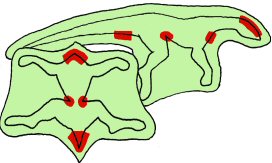 Seuraavassa kuvassa on punaisella merkitty ne alueet, joissa sinun täytyy olla hyvin tarkkana ja mieluiten ommella ne kohdat käsin: