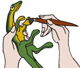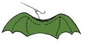 9. SIIPIEN KIINNITYS: Kun sekä vartalo että siivet ovat maalattuja ja täysin kuivuneita, voit ommella vartalon täyttöaukon kiinni ja sitten ommella siivet täyttöaukon päälle. Voit vielä maalata kangasväreillä ompeleiden päältä hävittääksesi ompelujäljet ja nyt lohikäärmeen poikanen on valmis.