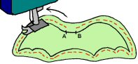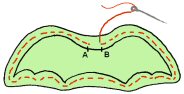 4. OMPELU: Ompele koneella siipikappaleet yhteen ääriviivoja pitkin A:sta B-pisteeseen asti ja jätä pisteiden väliin kääntämiseen ja täyttämiseen tarkoitettu aukko: