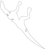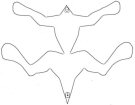 Kaavojen jäljennys/leikkaaminen: Tulosta paperille oheiset kaavat ja leikkaa kaavat irti. Jäljennä pehmon osat kankaan nurjalle puolelle (käytä kynää jonka jälki ei mene kankaan lävitse) niin että vartalokappaleita on 2 peilikuvina, kuten siipiäkin ja vatsakappale yksittäisenä. Jätä jäljennettyjen osien väliin hieman tilaa seuraavan kuvan tyyliin: