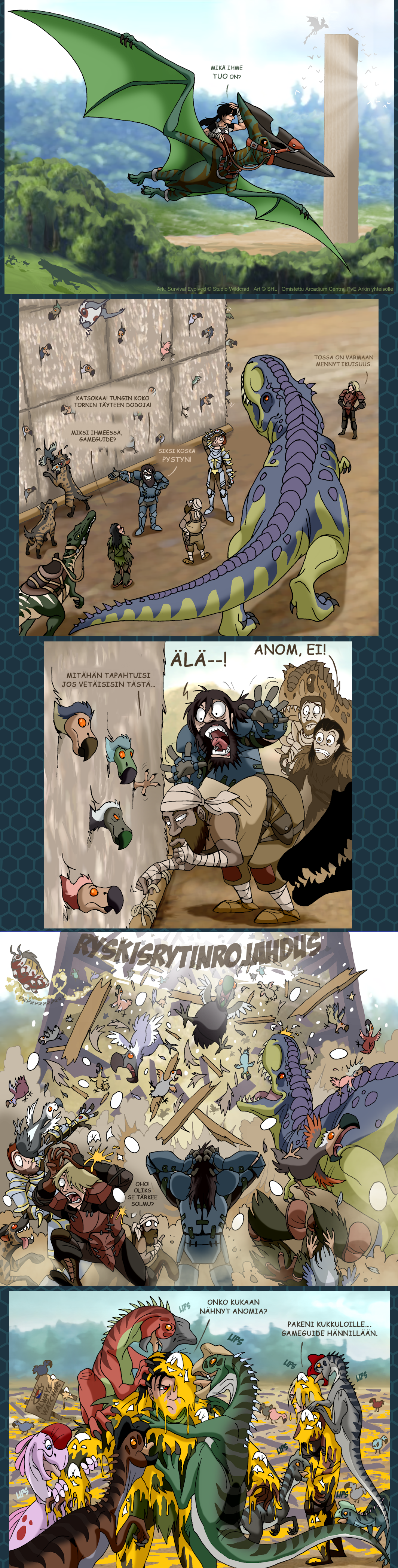 Parodiaa Studio Wildcardin kehittämästä multiplayer-selviytymispelistä, jossa elellään ihmisenä erilaisten dinosaurusten ja mielikuvitusolentojen kansoittamassa maailmassa.