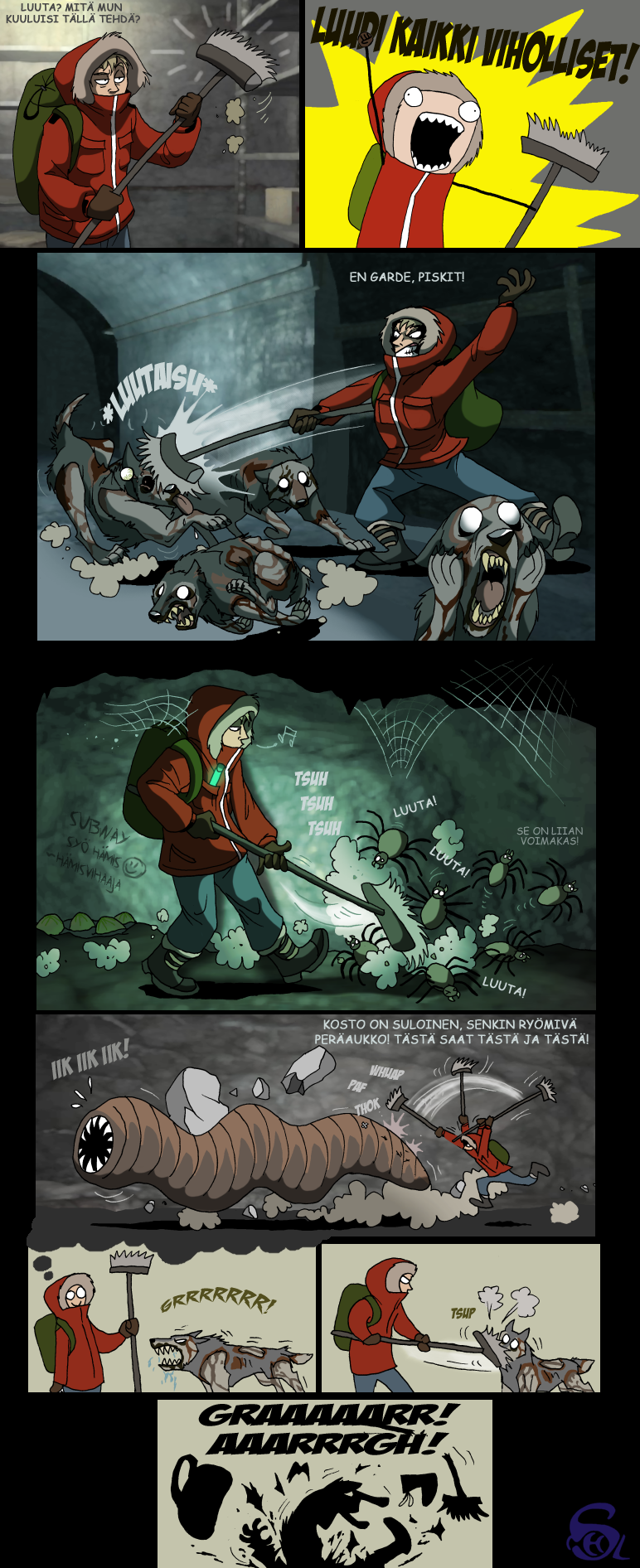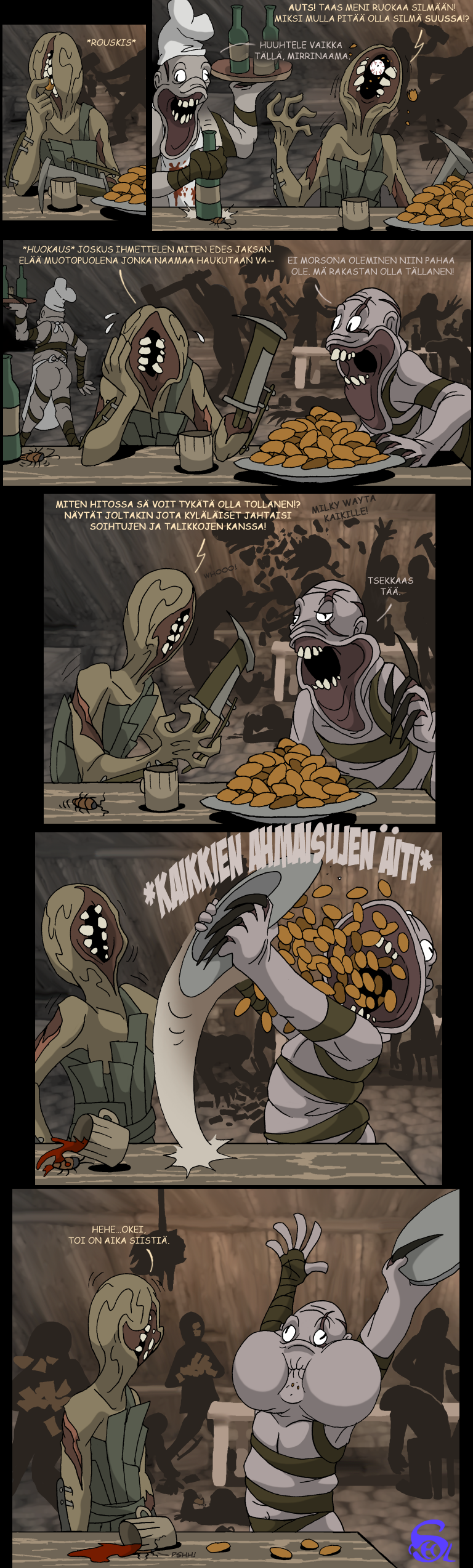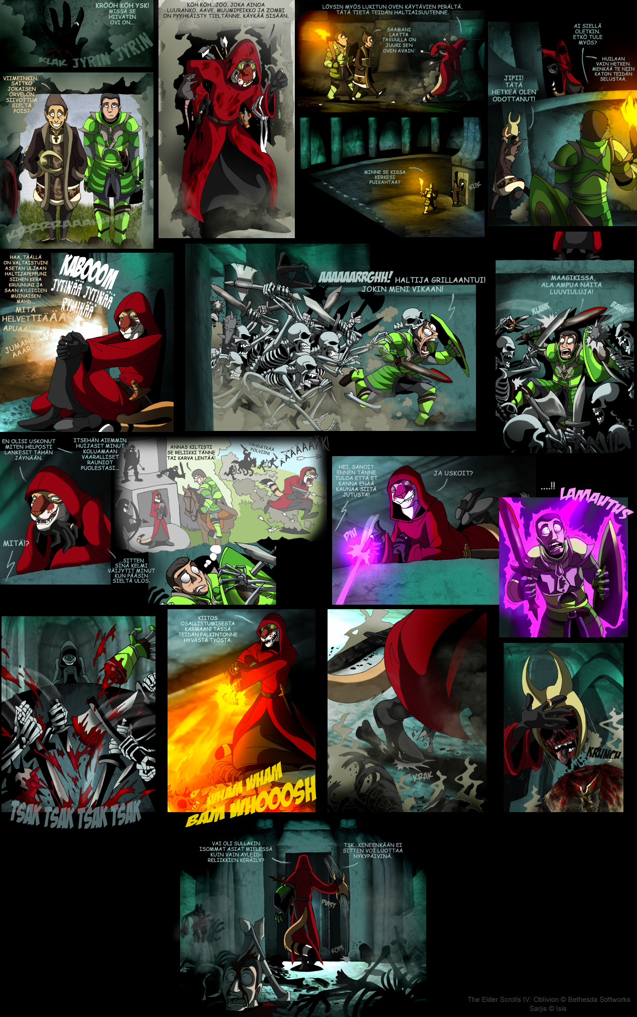 Parodiaa Bethesda Softworksin luomasta tietokoneroolipelistä Oblivion. Sarjakuvat mukailevat omia kokemuksiani pelissä.Karma