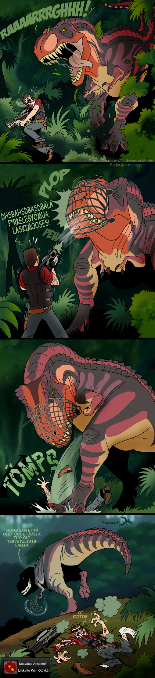 Parodiaa Lukewarm Median multiplayer-pelistä Primal Carnage. Pelissä voi olla joko ihmisten tai dinosaurusten joukkueessa.