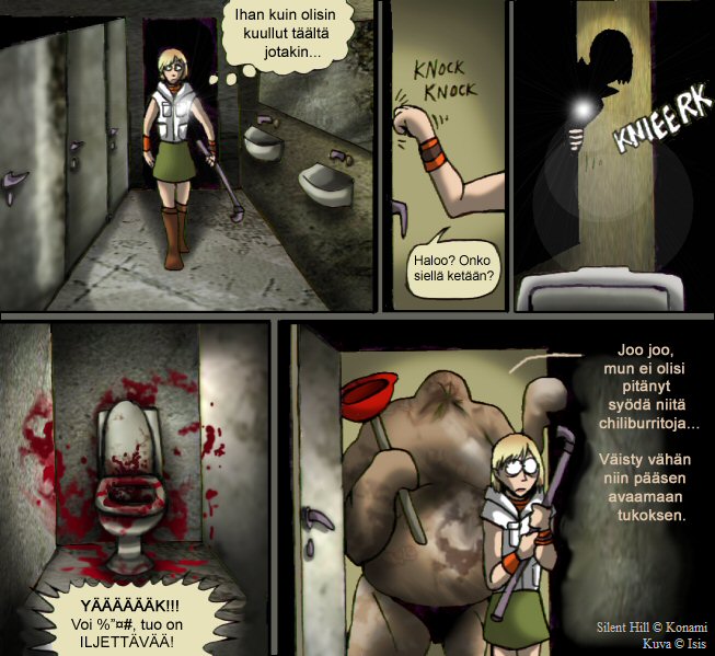Parodiaa Konamin tuottamasta selviytymiskauhu-videopelistä Silent Hill 2. Sarjakuva jäi tähän asti kesken.