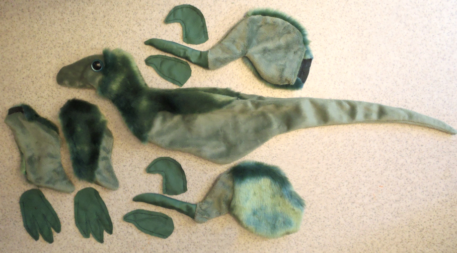 Täältä saatavat kaavat ja etupäässä visuaaliset ohjeet opastavat, miten voit tehdä realistisen "höyhenpeitteisen" velociraptor-pehmolelun.