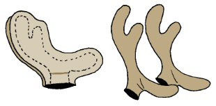 1. Ompele sarvikappaleet yhteen, jätä sarvien tyvi auki, käännä ja täytä sarvet.