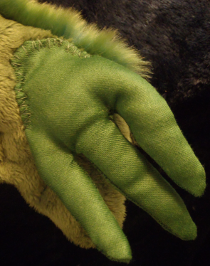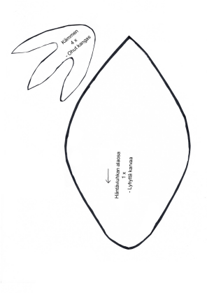 Tältä ommellut pehmon osat näyttäisivät kun ne ovat käännetty oikein päin ja ennen raajojen kiinniompelua vartaloon. Varpaat ja kädet ovat vielä kuvassa kääntämättä oikein päin.